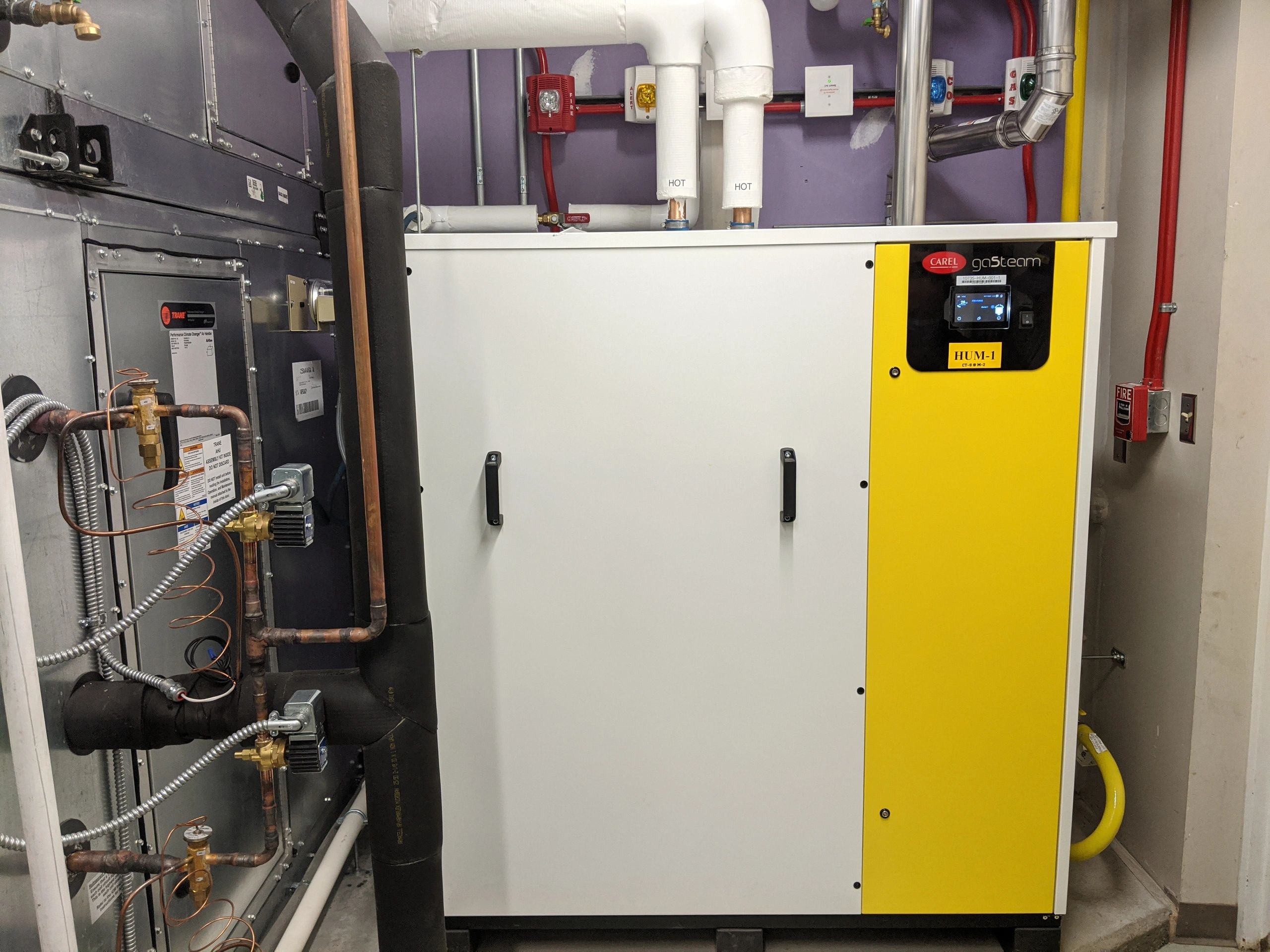 Dynamic Product Solutions provided a Carel GasSteam Humdifier to meet the humidification needs for a local Veterinarian Clinic. The Clinic is served by a 100% OA AHU and in order to keep the people and animals comfortable, and equipment working properly, the humidifier, maintains the building at a minimum of 35%RH.
